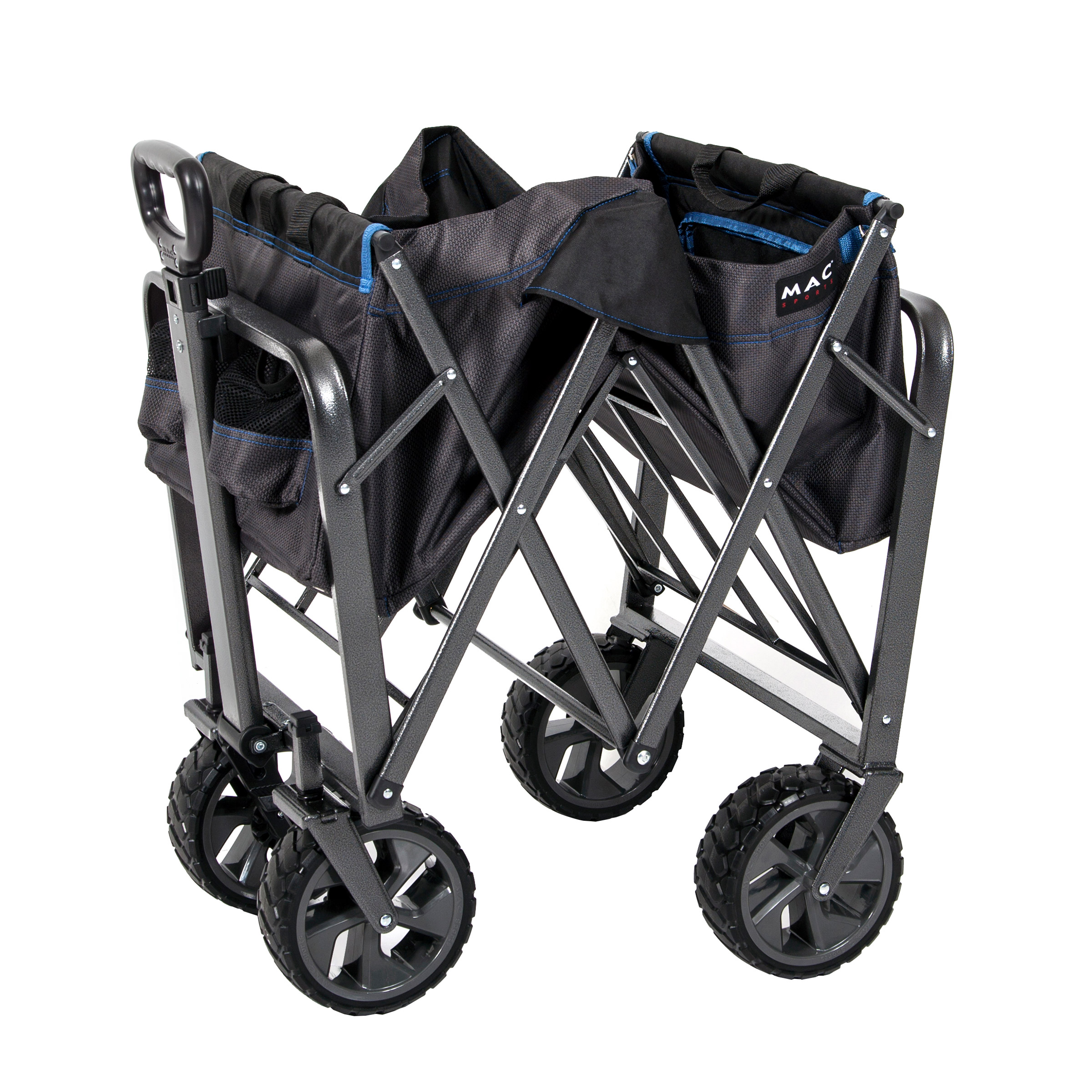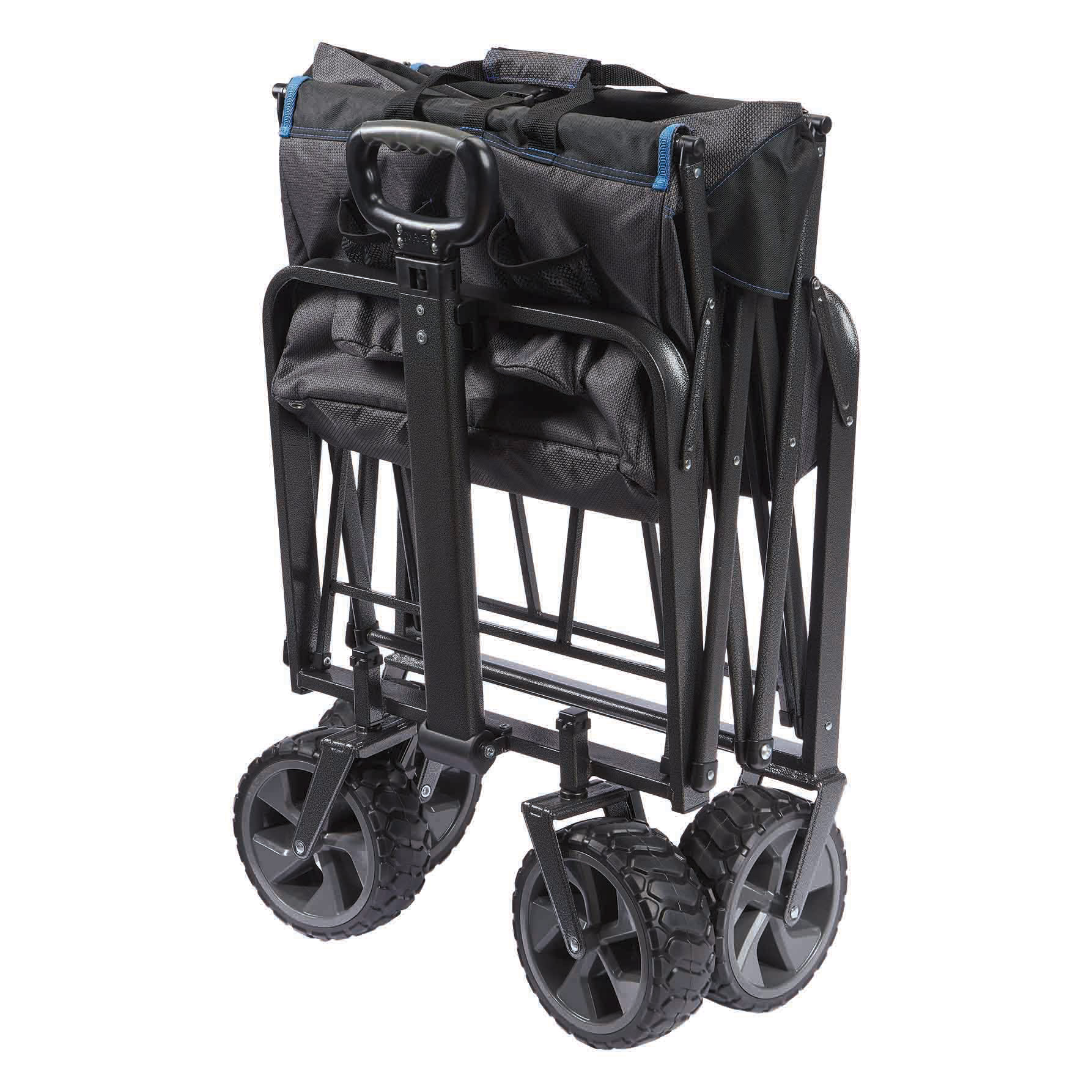 The wagon is very well made, sturdy, strong, and folds open and closed very easily. Has lots of pockets and can open in the back to accommodate longer items like an Easy Up. My biggest question before I purchased it was: how well it would roll through soft, deep sand on the beach? That answer is just okay. You still have to essentially drag it through the sand with some muscle because the wheels fall below the surface level of the sand. Honestly, I am unsure if any wagon under $150 can do this. One would need wide 15″ wheels to do that. We are very happy with the wagon.